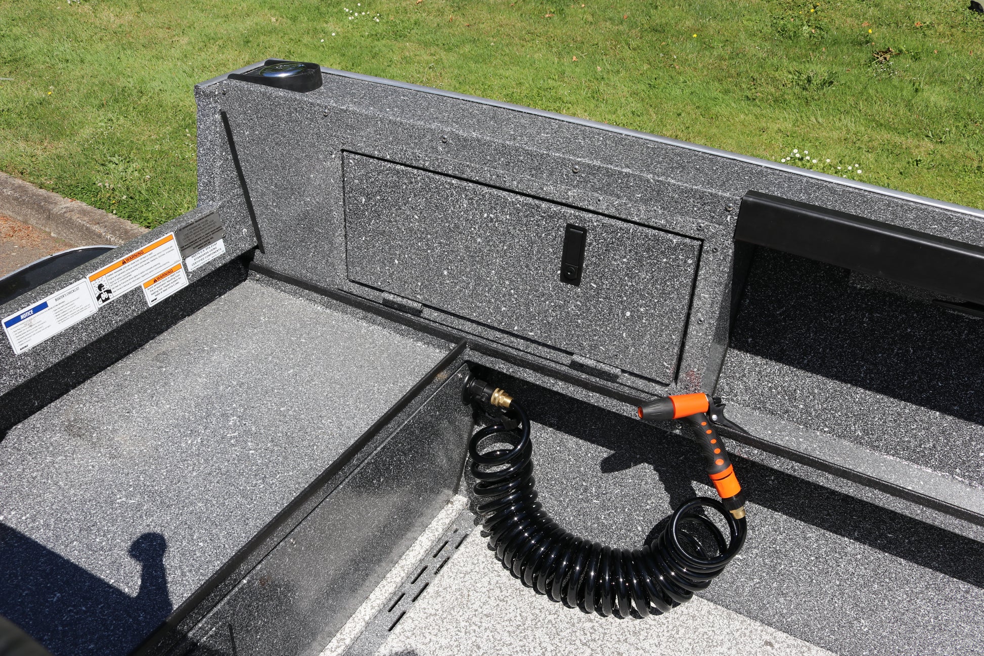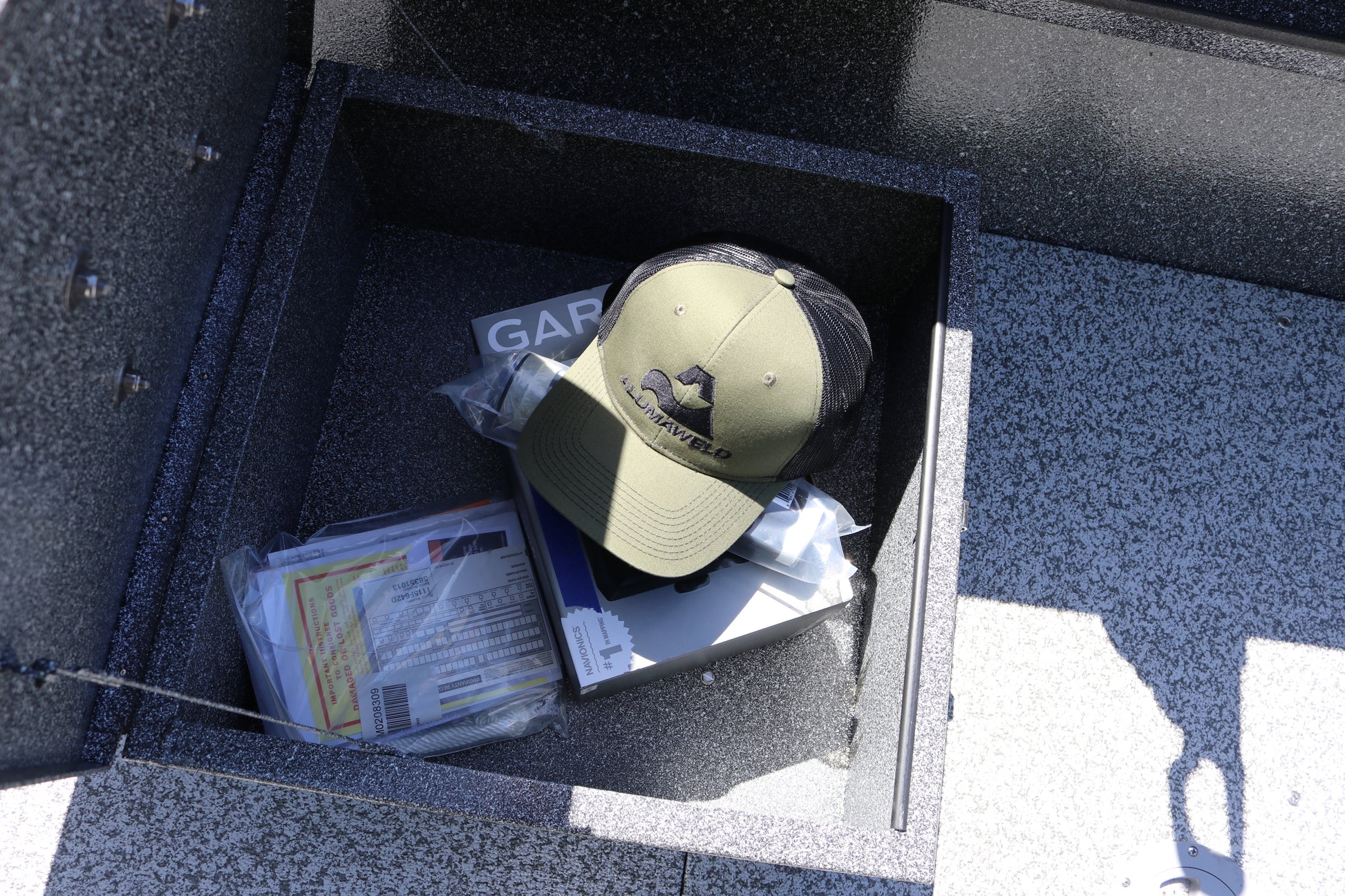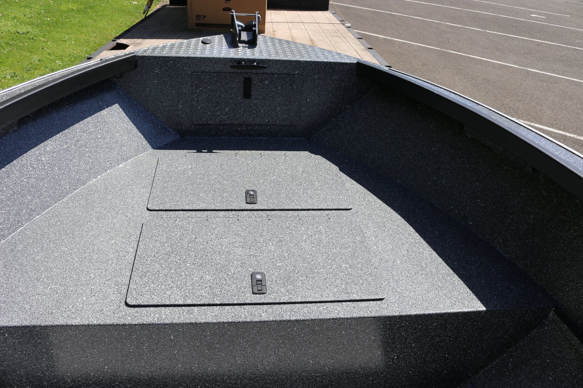 Welded fish box in bow with lid