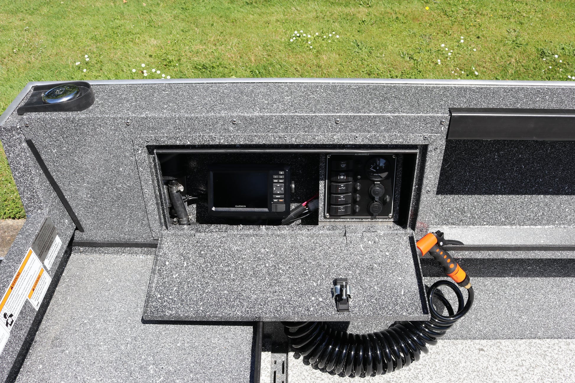 The Adventurer provides the versatility of a jet or prop application. The 14° bottom with Alumaweld’s exclusive Ride Master Vee (RMV) bottom allows you to achieve the benefits of a deep vee bottom. Allowing you to cut through chop and yet the ability to use in a jet application. High sides, along with a wide coaming, provides stability while standing fighting that record fish.