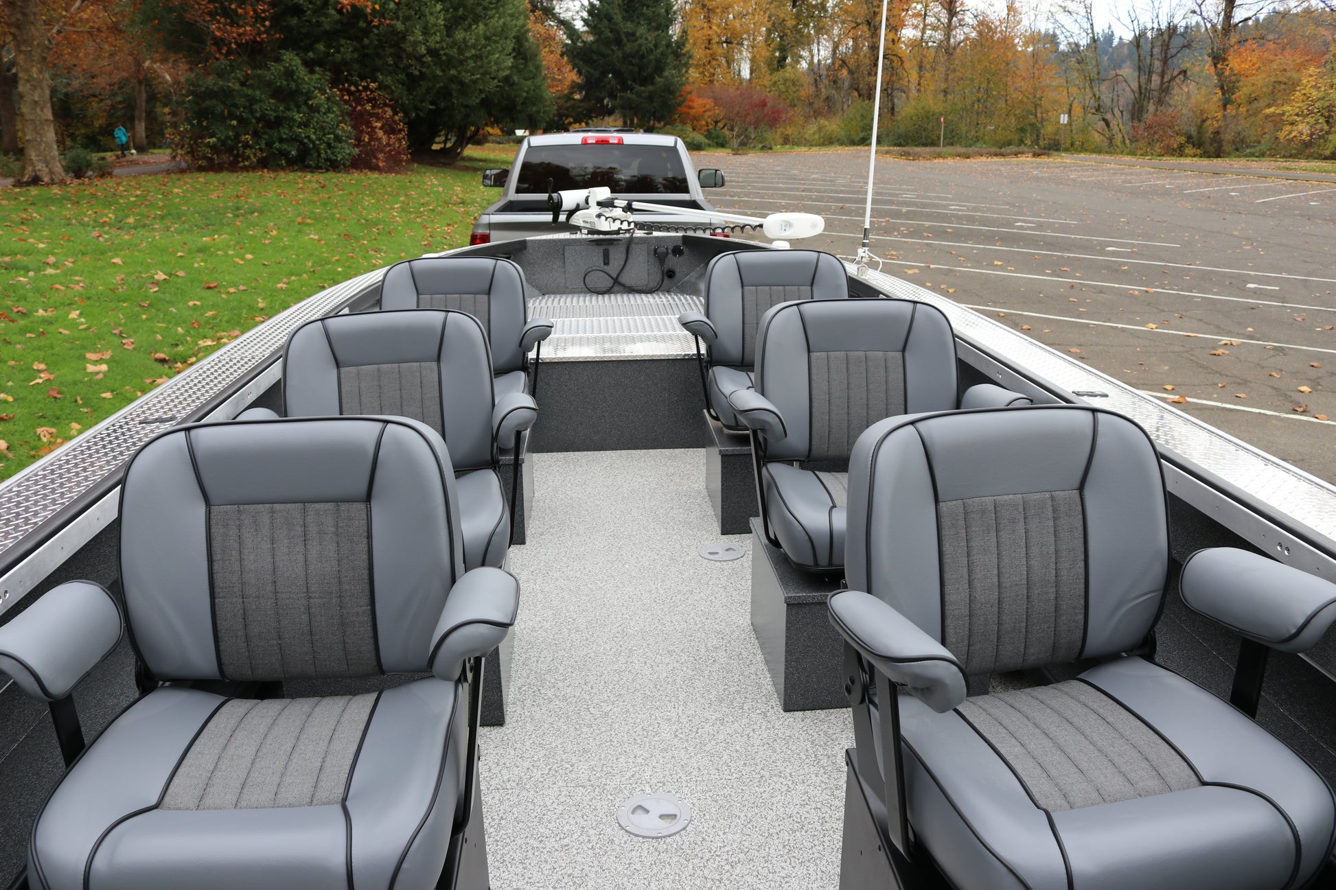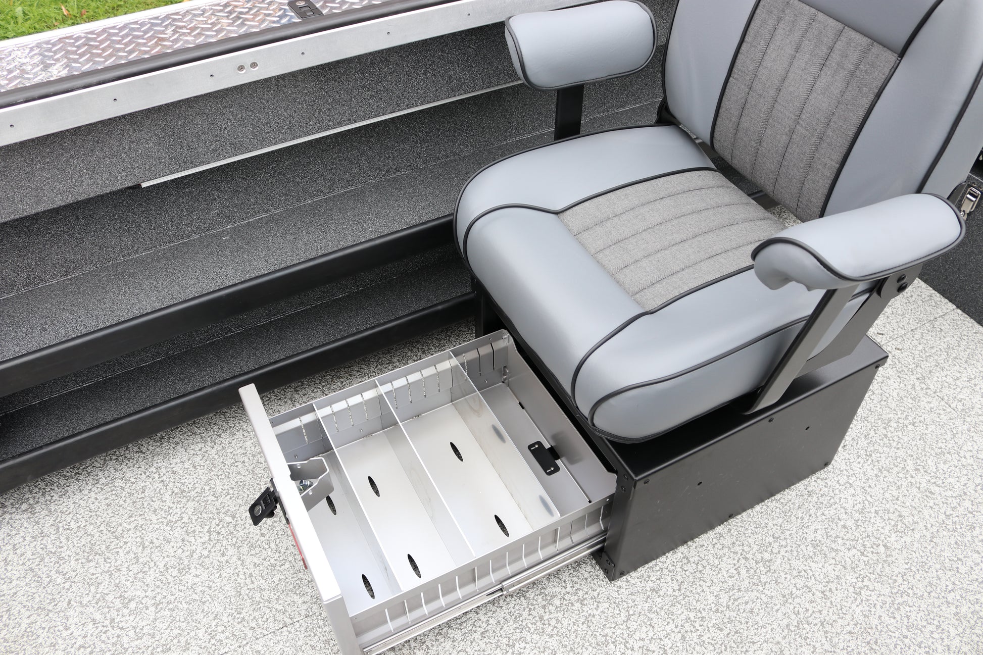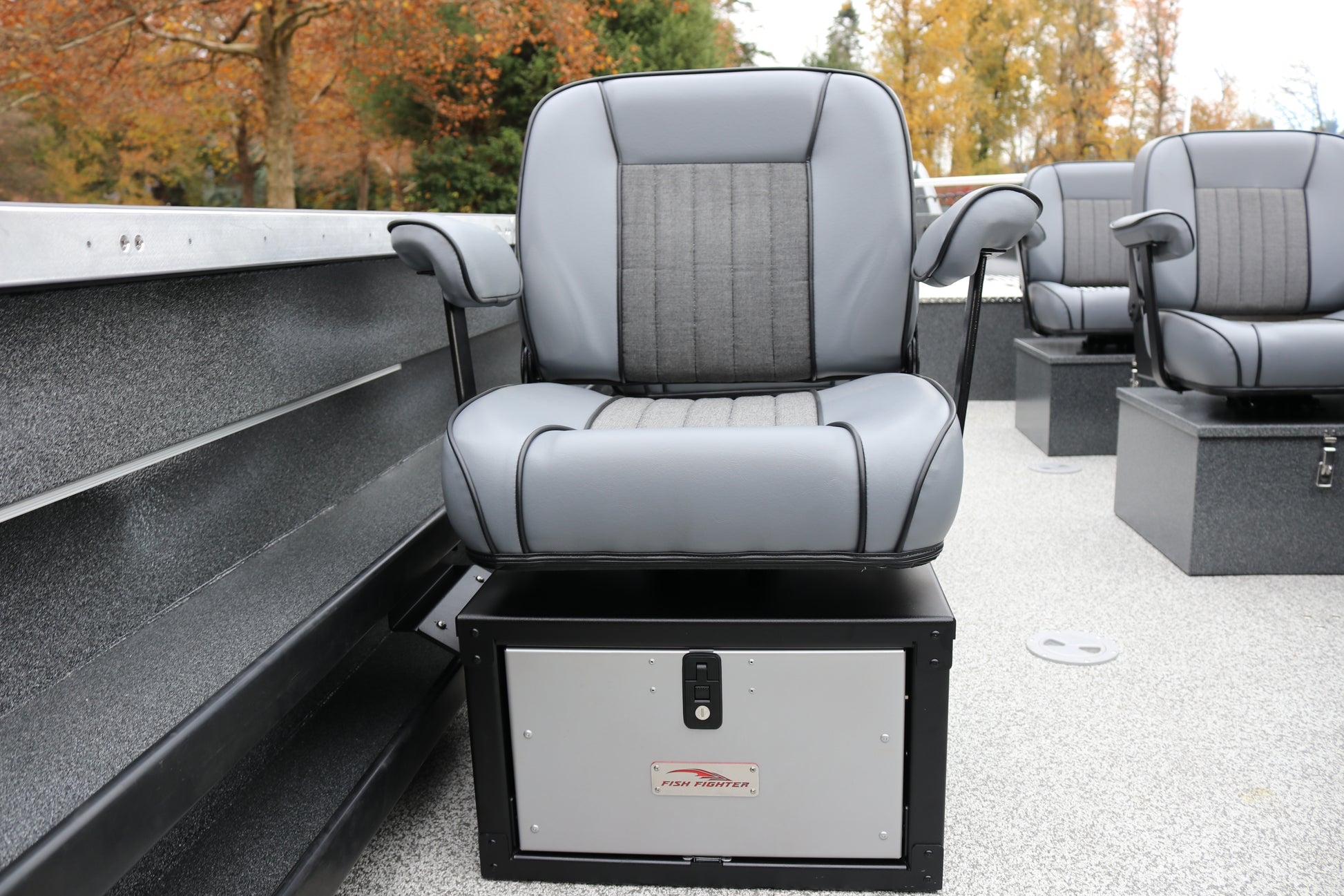 Four deluxe comfort seats on adjustable aluminum storage boxes