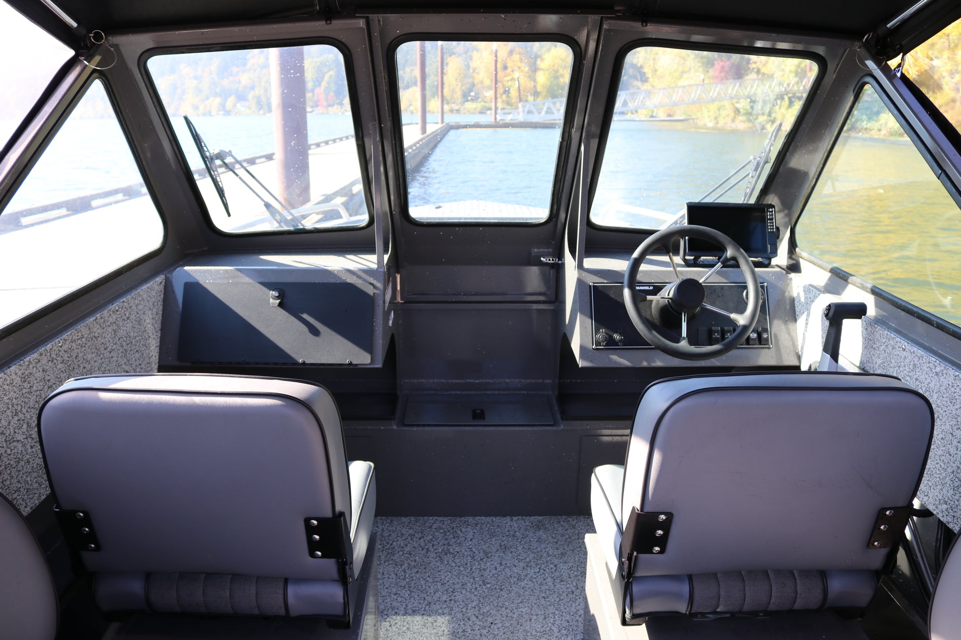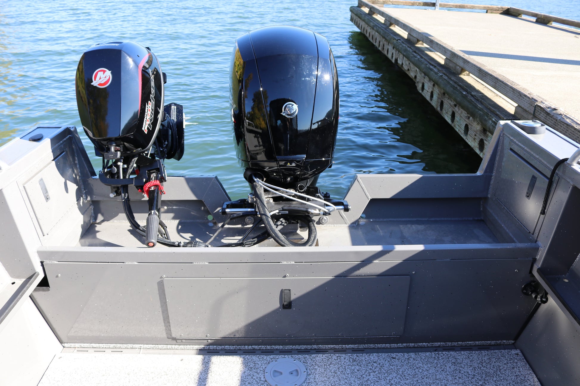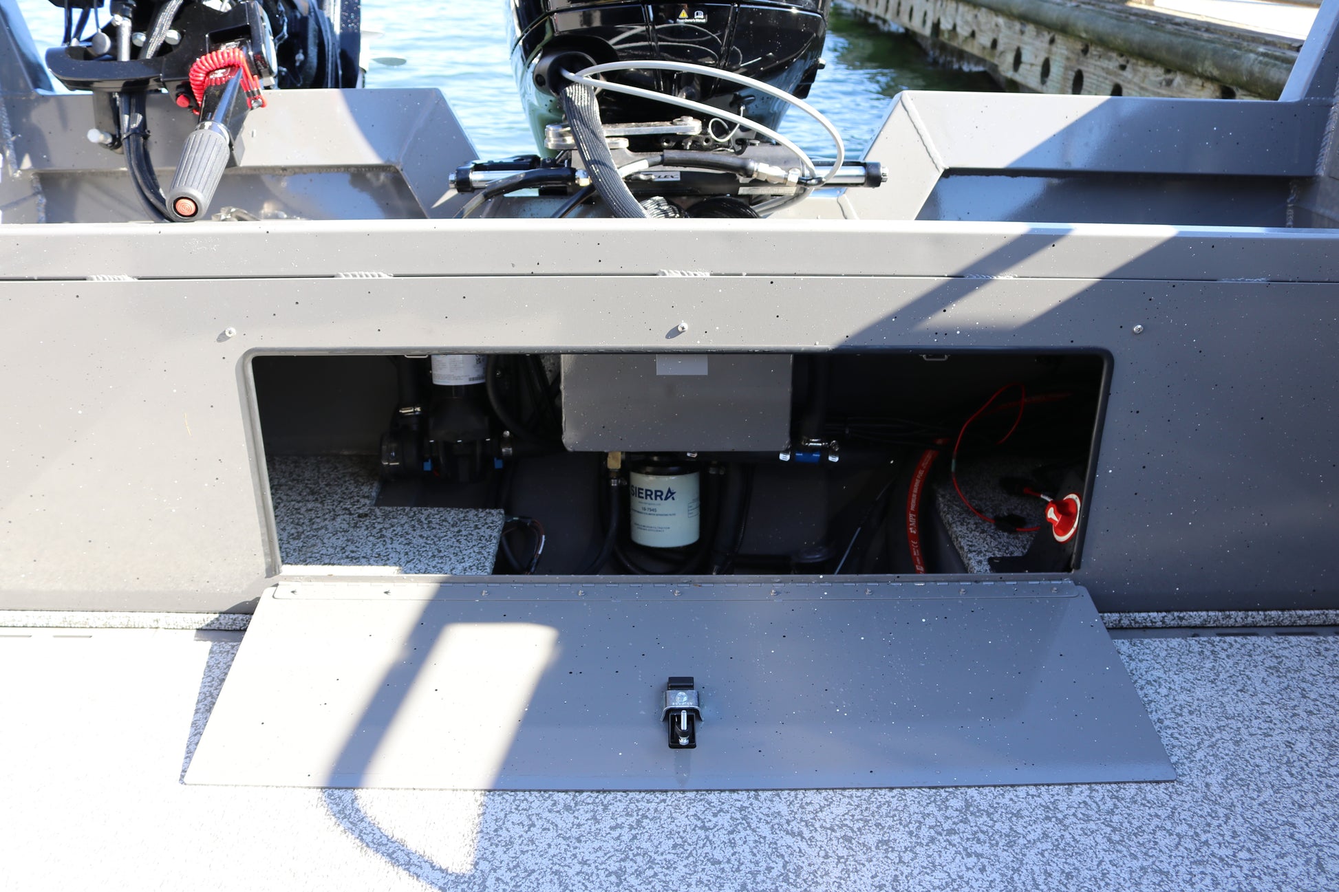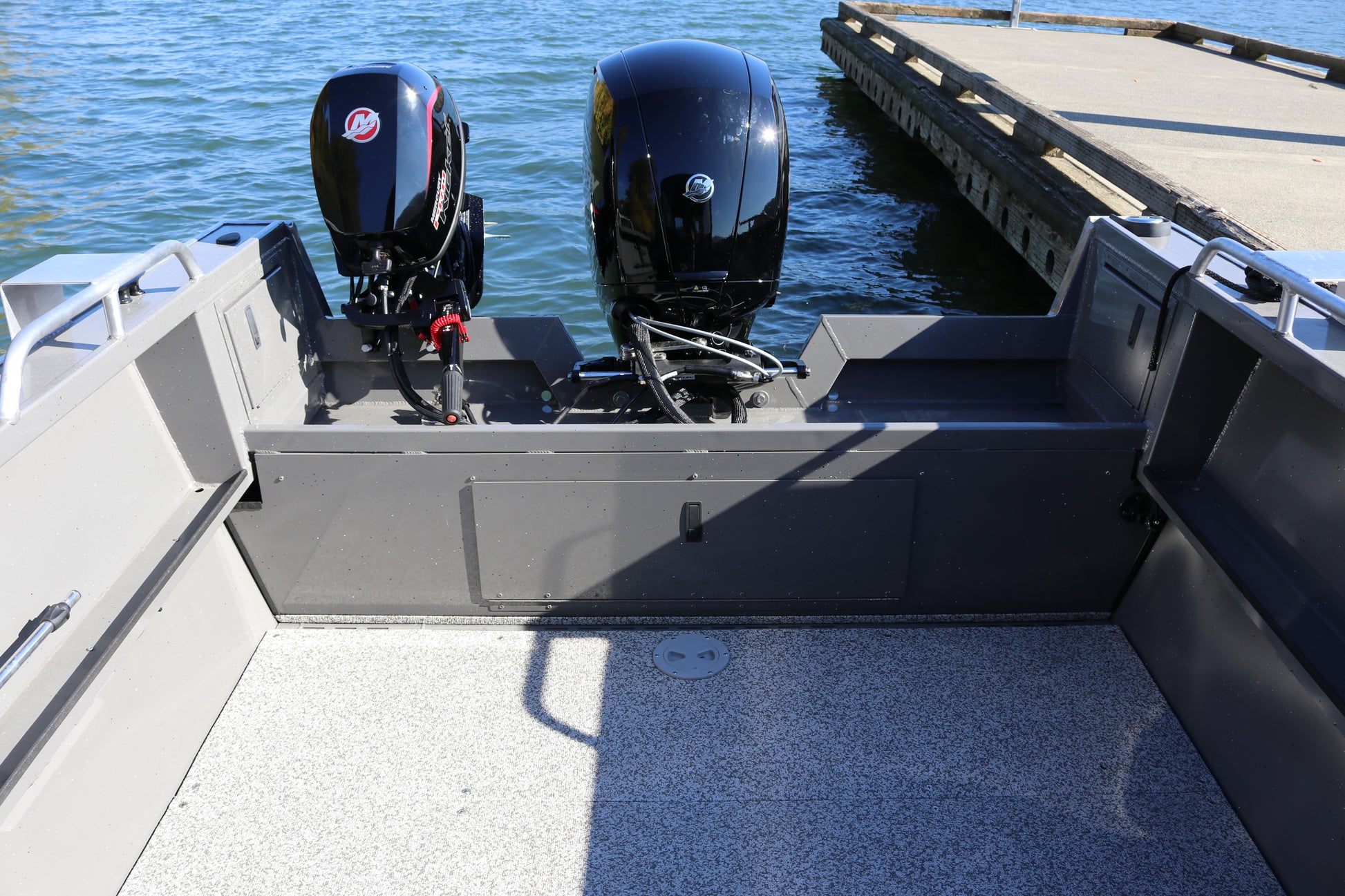 -Generous Storage – Bow storage, all-welded aluminum storage box seats, glove box, rod storage, welded bow fish box, full length storage trays and transom storage…all standard.