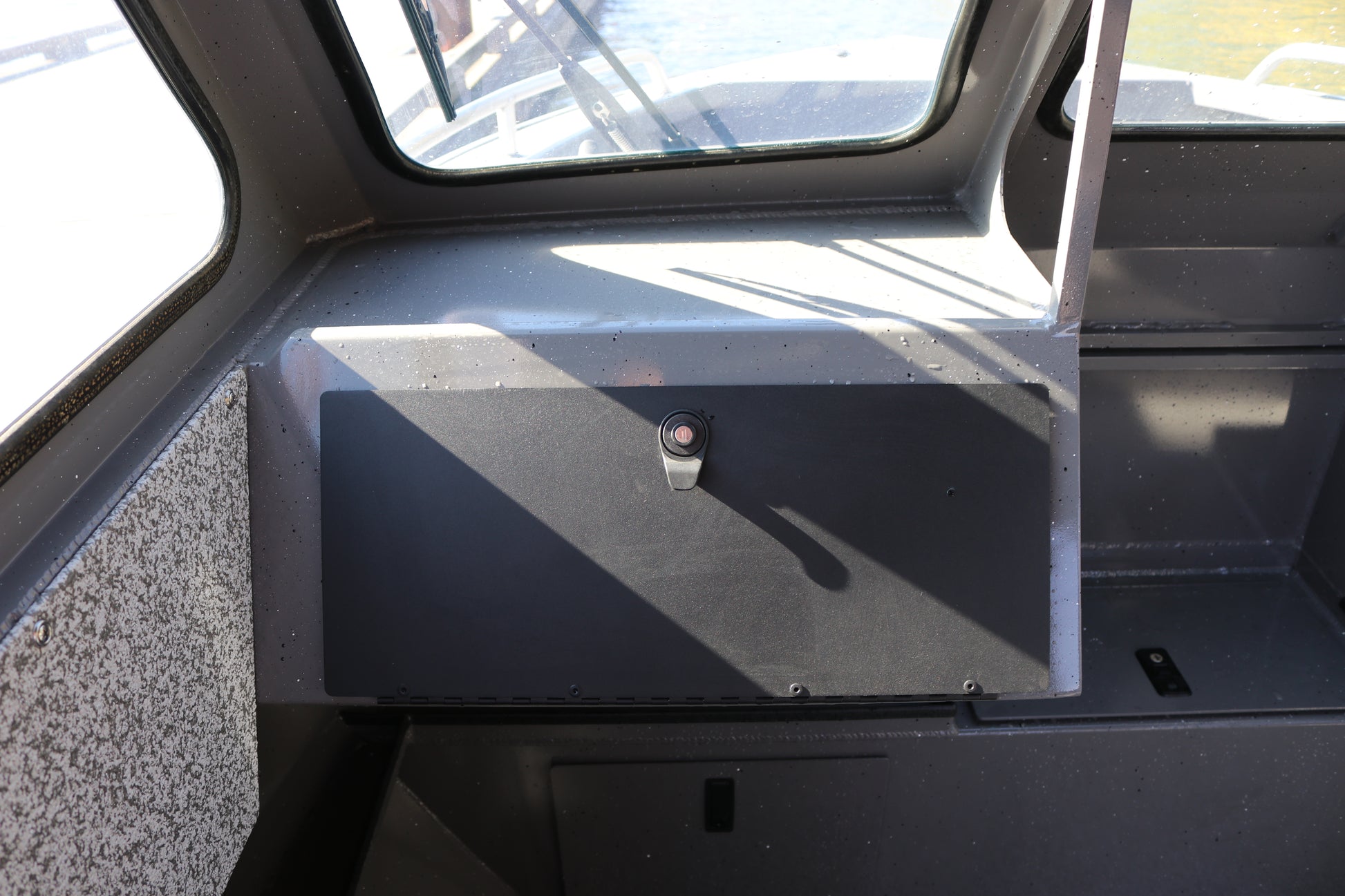 Welded aluminum glove box with locking door
