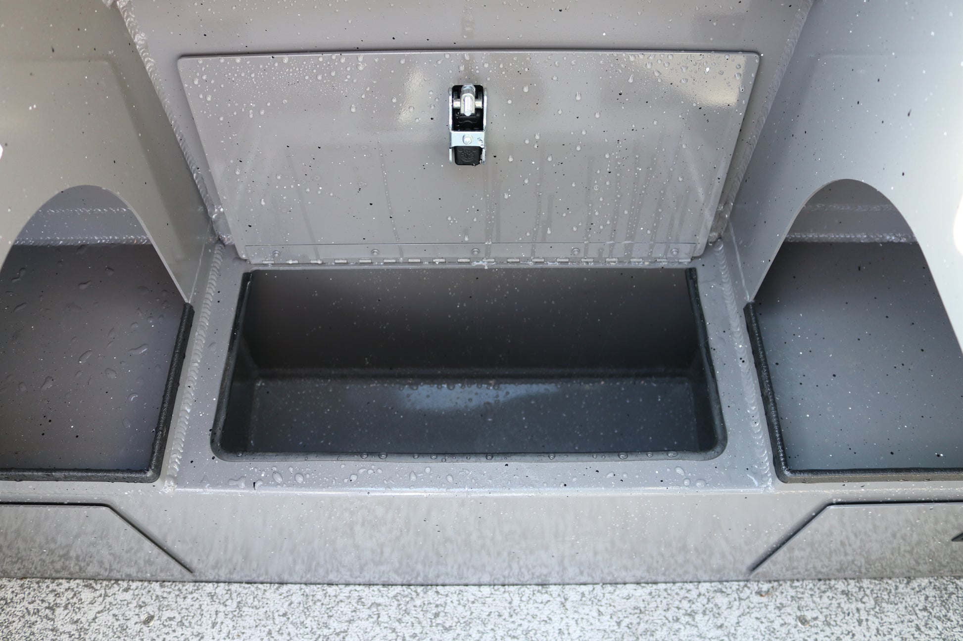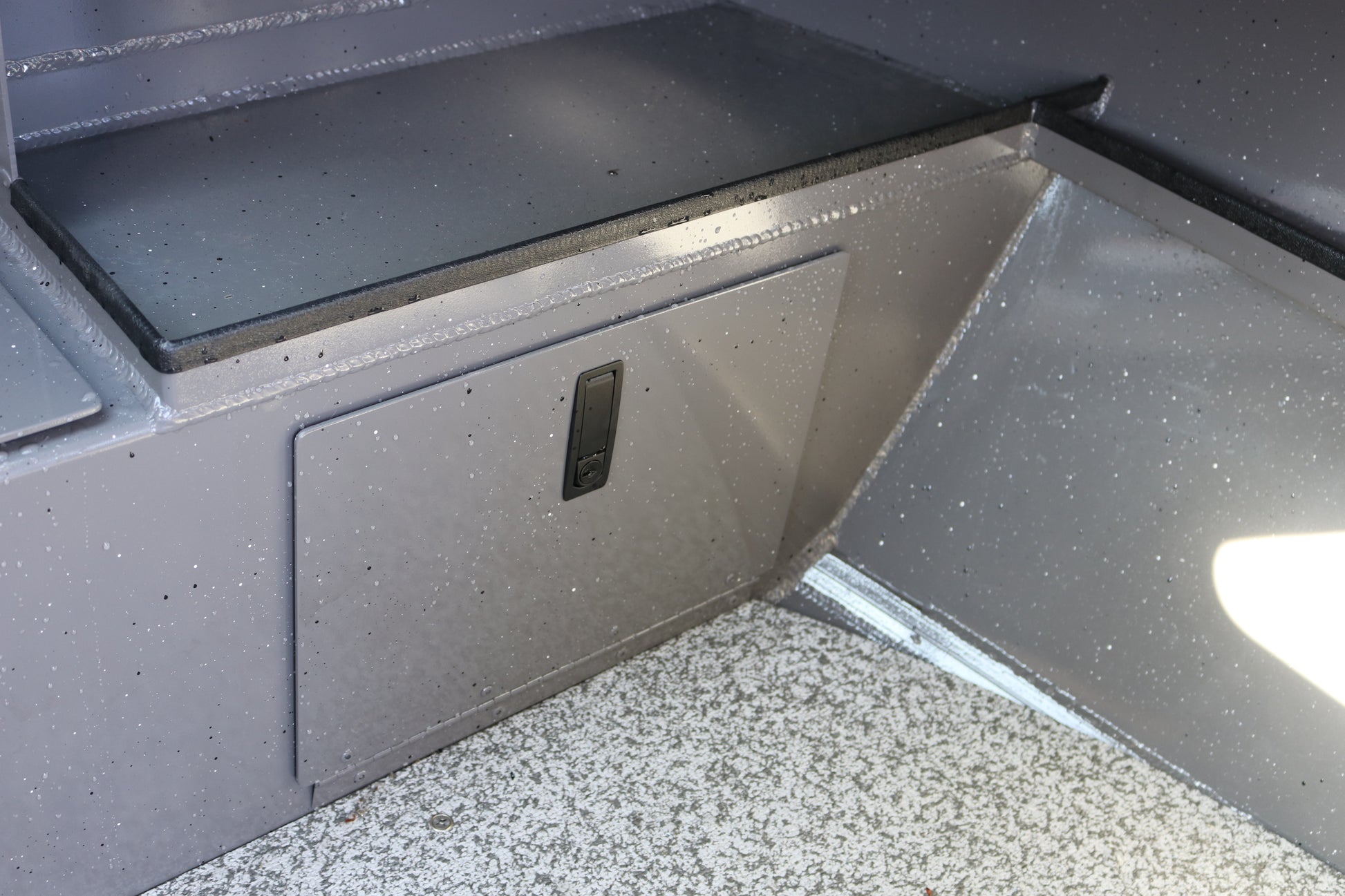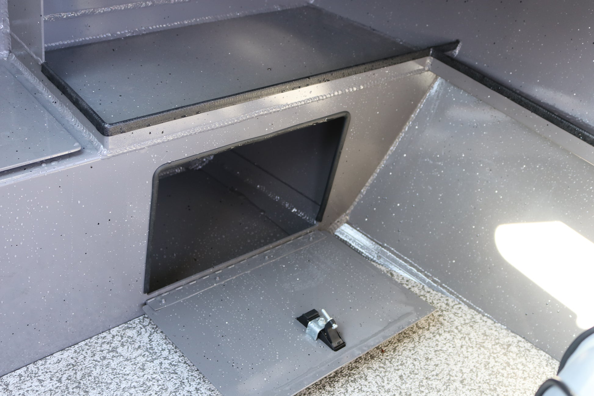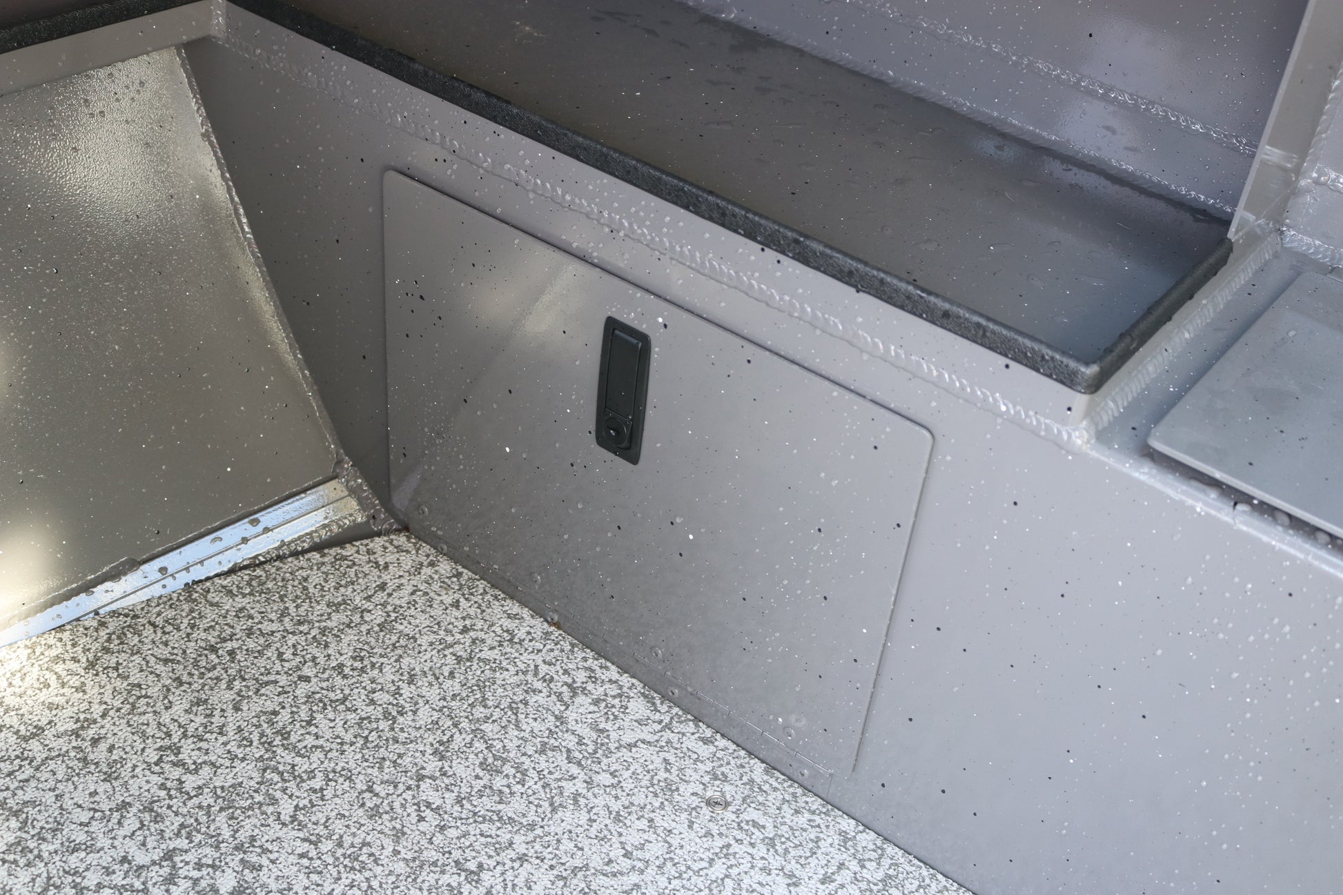 Welded aluminum step deck with storage
