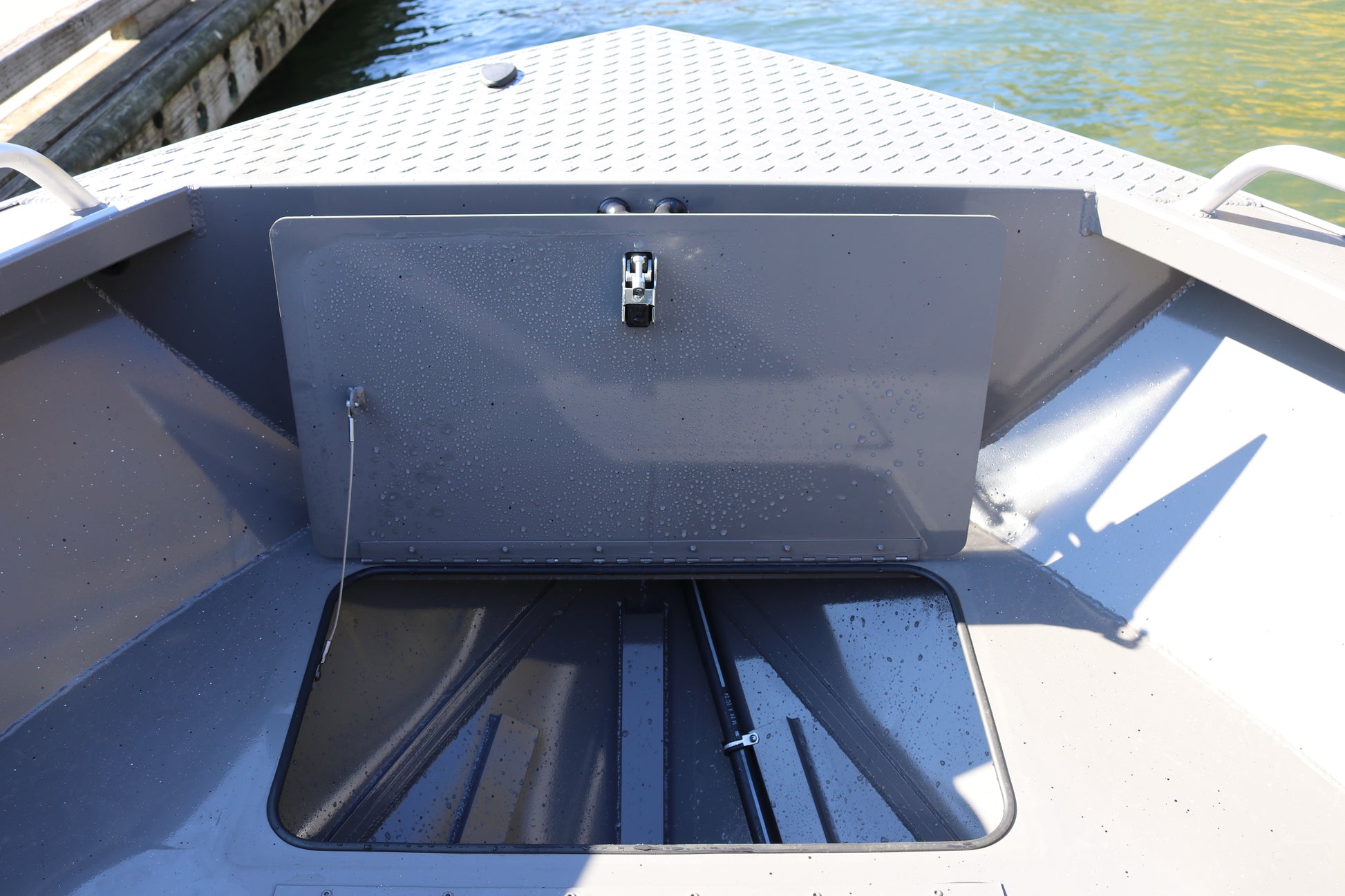 Welded fish box in bow with lid